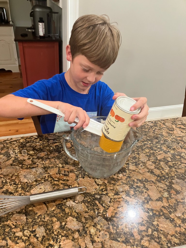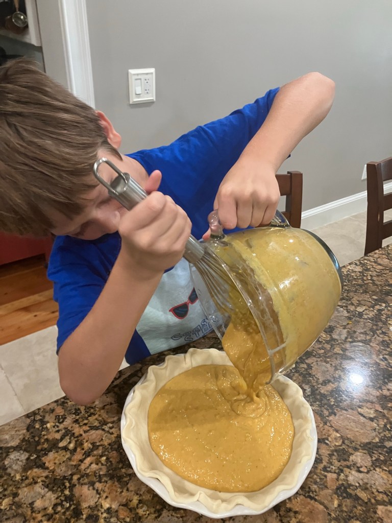 Then we just made a Pumpkin Pie because… another book twisted my arm. It wasn’t Marjorie Price this time. Actually, the book inspired me with it’s made from scratch variety. But I have cans of pumpkin lined up just for this sort of use. So, I went with a simple but delicious Pumpkin Pie Recipe that is sweetened only by the condensed milk in it.