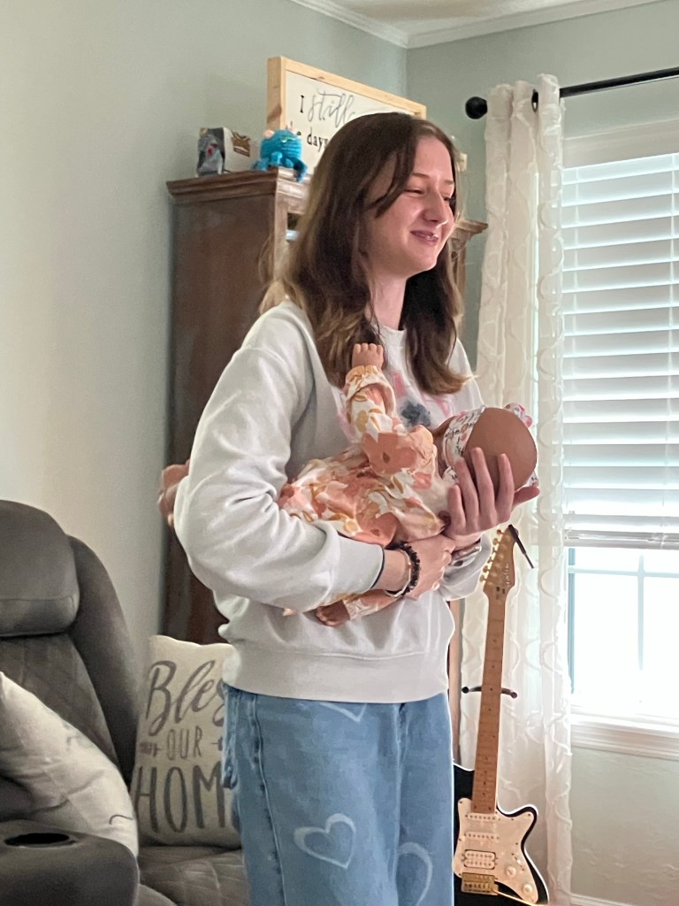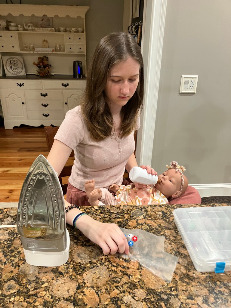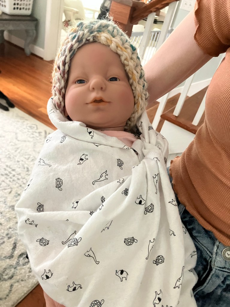 Concluding Thoughts. My daughter had been warned that one of the participant’s dolls cried 8 times throughout the night. Surprisingly, she found the project to be easier than expected. Despite her neutral feelings towards babies, a nurturing and attentive side of her emerged during this experience. She dedicated time to dress, care for, and even crochet two headbands for the doll. But she still has a long way to go before being ready for parenthood. Her main focus at the moment is pursuing a career as a veterinarian. Nevertheless, I hope that she will look back on this experience fondly when she eventually holds her own, real baby.