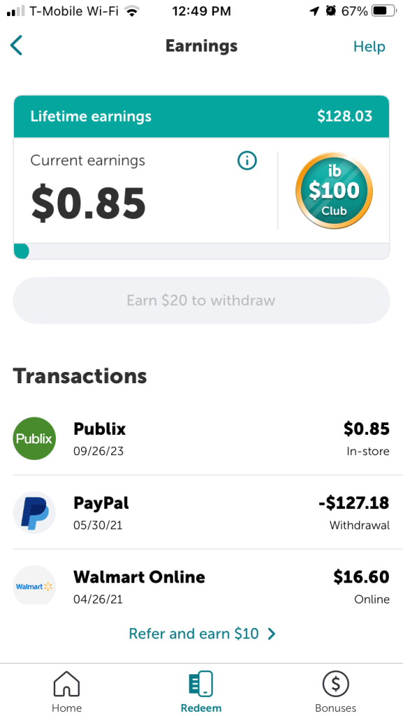 (5) Ibotta App. “Ibotta is a free cash back rewards web and mobile app that offers real cash for everyday purchases when you shop. By partnering with more than 2,700 brands and retailers, Ibotta provides thousands of opportunities for consumers to earn cash on their purchases.” I used to use this app frequently. At one point, I even used it to redeem an entire Thanksgiving dinner. However, some significant changes occurred in my life, which led to a decrease in my interest in using the app. Recently, after I shared a post on Facebook about money-saving tips, a couple of friends reminded me about the Ibotta app. Intrigued, I decided to redownload it and scanned my Publix receipt, earning $0.85 cents in cash back. If you’d like to give it a try, you can click here to use my referral link, and you’ll receive $5 in your Ibotta account. As evidenced by my lifetime earnings of $128.03, the app practically could have paid for my recent grocery trip to Publix!