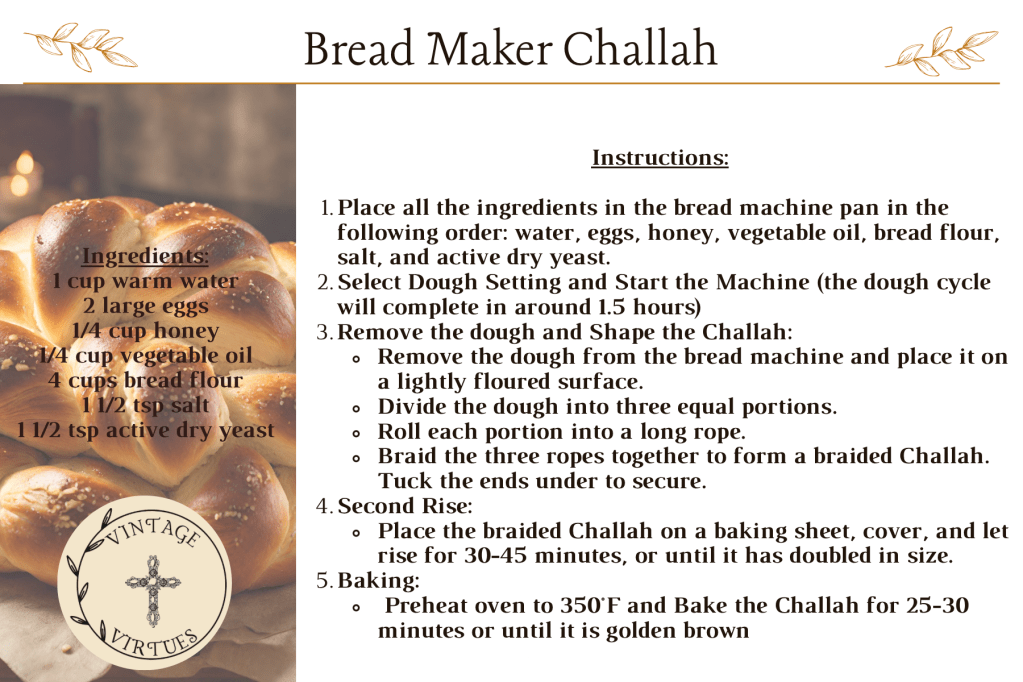 I love making bread for many reasons. It’s rewarding to create something fresh from scratch that I can feel good about feeding to my family. Homemade bread tastes better and is less processed compared to store-bought bread. Nothing beats that first bite into a fresh, hot piece of bread. Challah bread ranks high among my favorite types of bread. It’s beautiful when braided, light and airy, and has a delightful flavor from the combination of honey and farm-fresh eggs. It’s great to serve with any meal and is quite versatile. It can be made as a dinner bread or transformed into a dessert with the addition of raisins and cinnamon to the batter. Friends from our homeschool group recently gathered to make Challah as part of a unity study on Israel. You can read more about it here: Israel: An Immersive Unity Study. The most recent batch I prepared was alongside our Christmas dinner. But I know you’re here for the recipe. So, without further ado, below I’ve included the recipe card and a video of the process of making Challah. Enjoy!