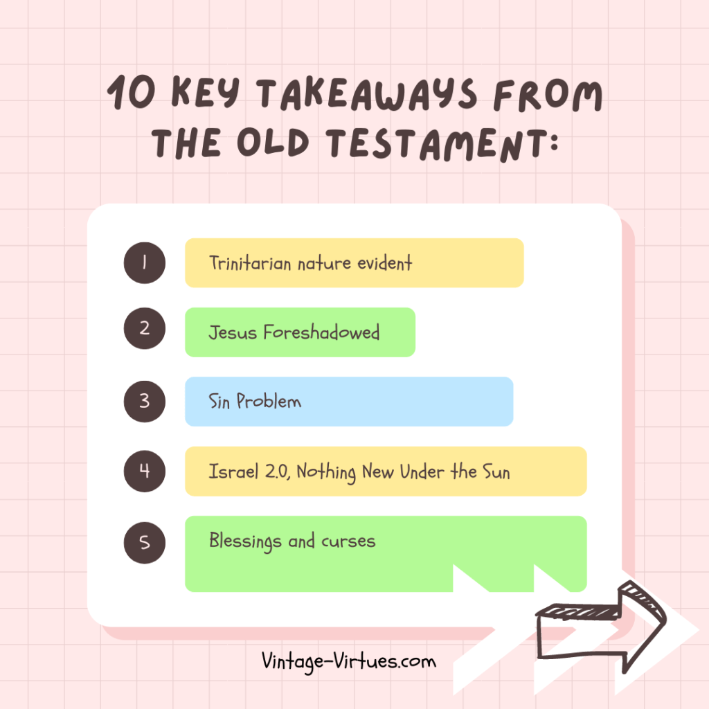 If one were to read the New Testament alone, without considering the context of the Old Testament, a different set of key takeaways may come to mind. However, it’s important to recognize the continuity between the Old and New Testaments, as the Bible is essentially one cohesive book that tells a complete story. Taking the fuller context into account, here is a list of 10 key takeaways: