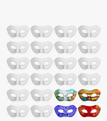 - Print the mask templates provided in the link above or purchase blank masks from a party supply store.