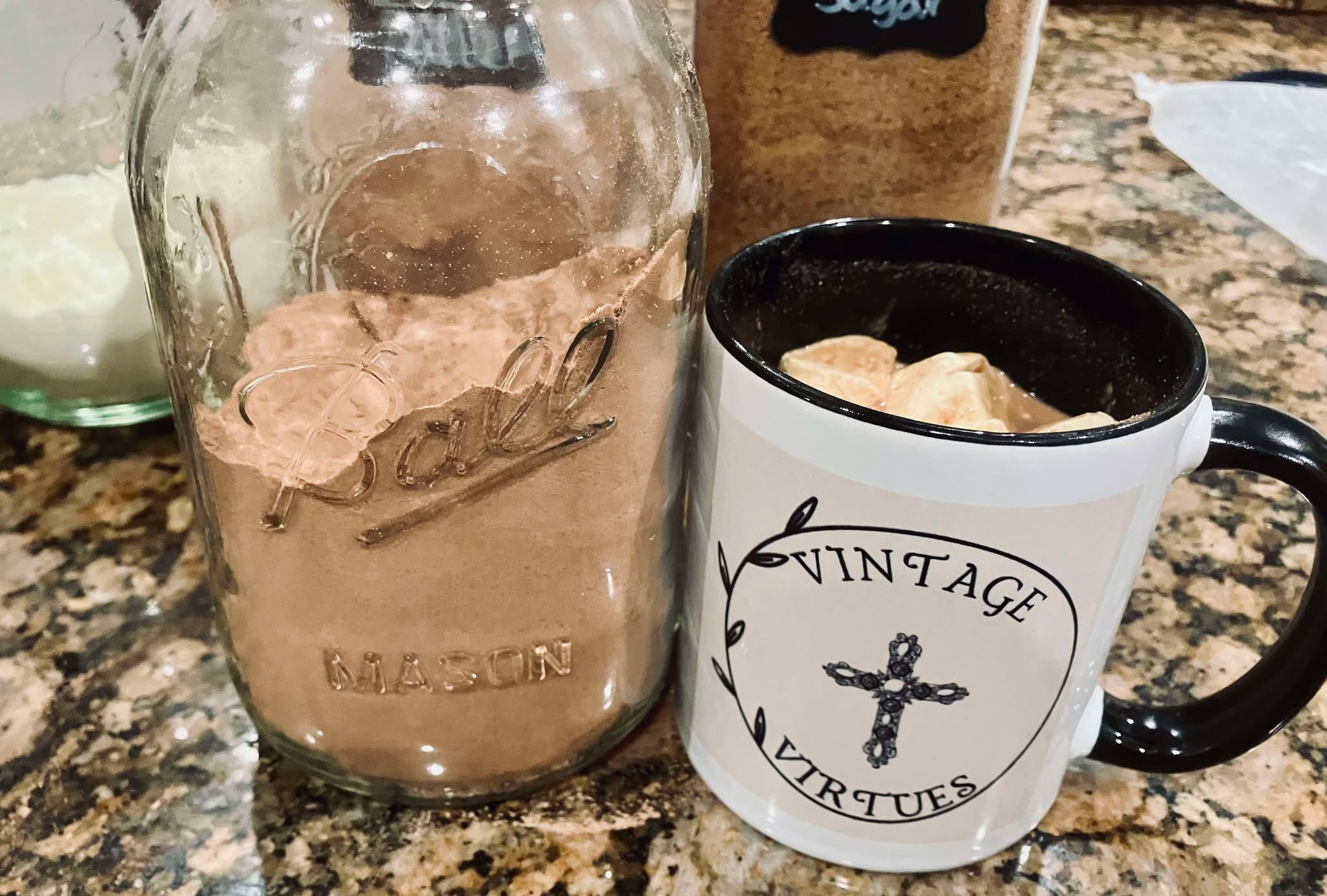 - When ready to enjoy, measure 4 tablespoons of cocoa mix into a mug.