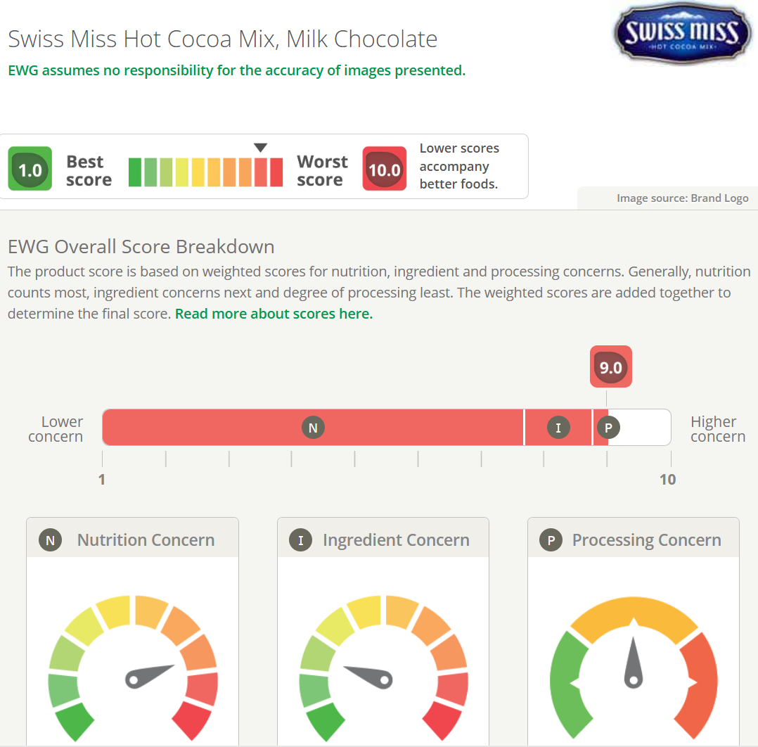 A warm cup of hot cocoa is one of life’s simple pleasures, but many store-bought versions come with a list of undesirable ingredients. Brands like Swiss Miss contain artificial flavors, preservatives, unhealthy trans fats, and a high sugar content. On a scale of 1-10 (1 being best and 10 worst), Swiss Miss hot cocoa packets score a 9 according to the Environmental Working Group (EWG).