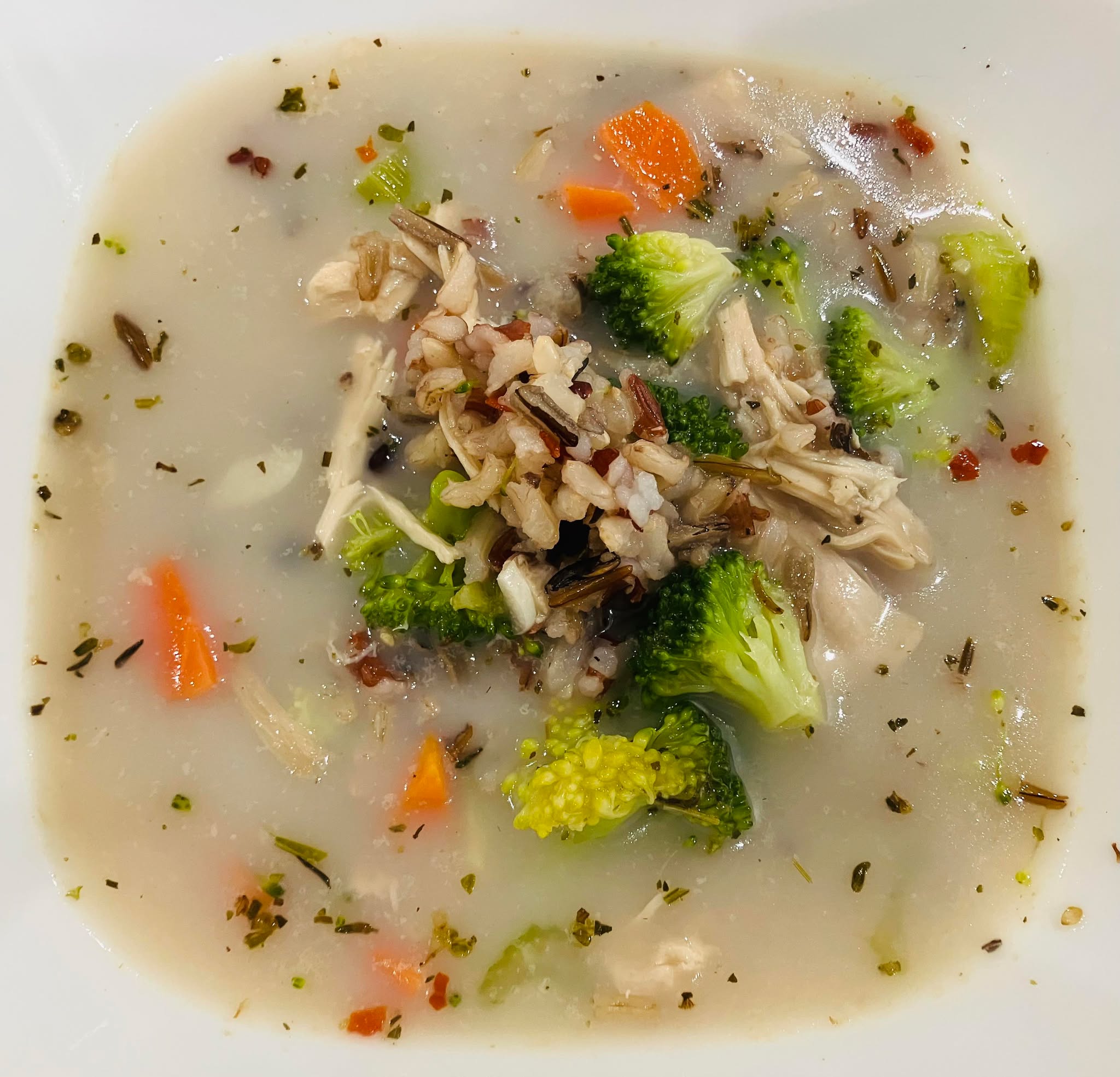 This cozy, nourishing soup wraps up our “chicken three ways” series. Made with a homemade broth from the chicken carcass and leftover meat, it’s packed with vibrant veggies, hearty wild rice, and a creamy finish—perfect for chilly days and meal prepping.