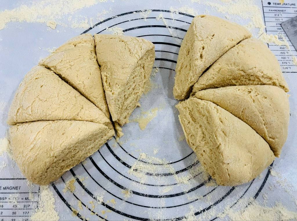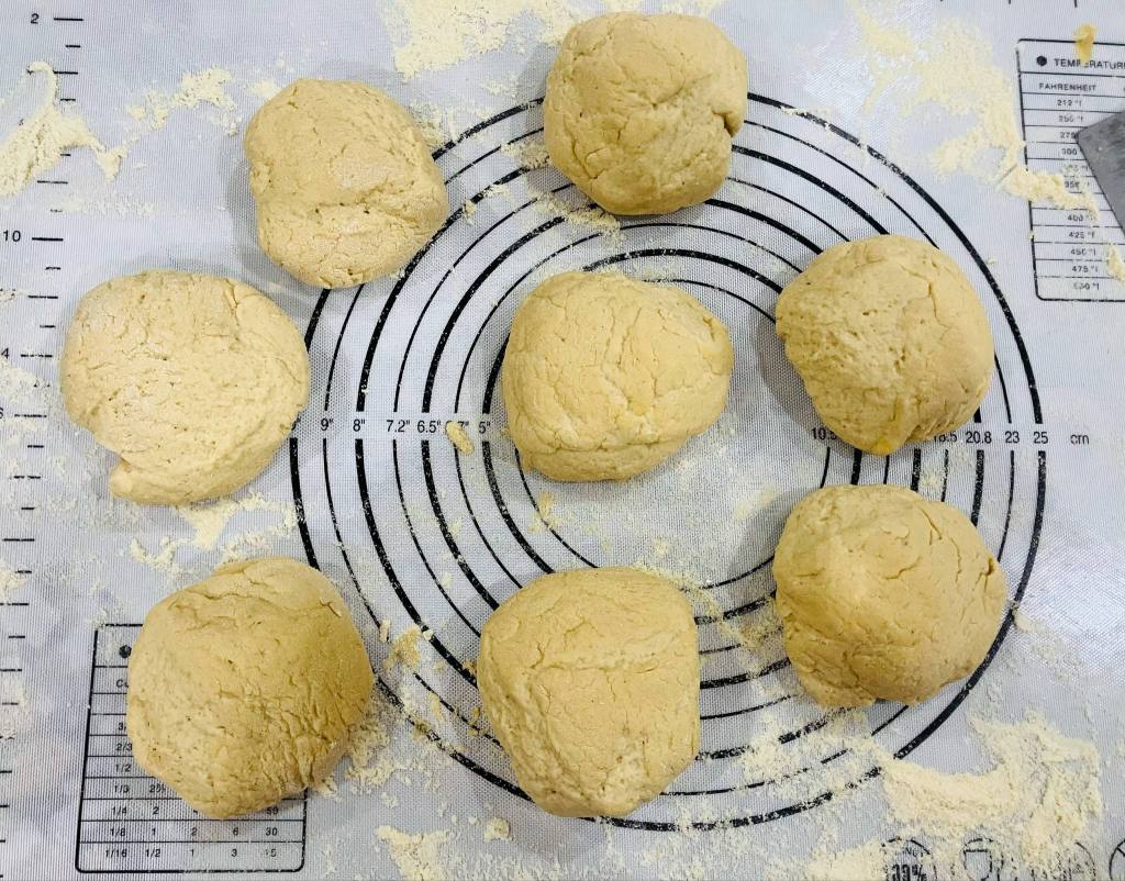 Divide the dough into 8 equal portions. Shape each into a round ball.