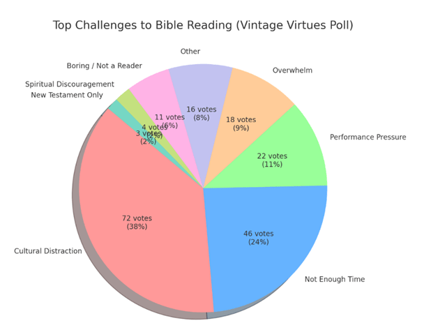 Citing the above research, I conducted polling with the Vintage Virtues audience to find out what factors may contribute to the lack of reading the Bible. Here’s what I asked: