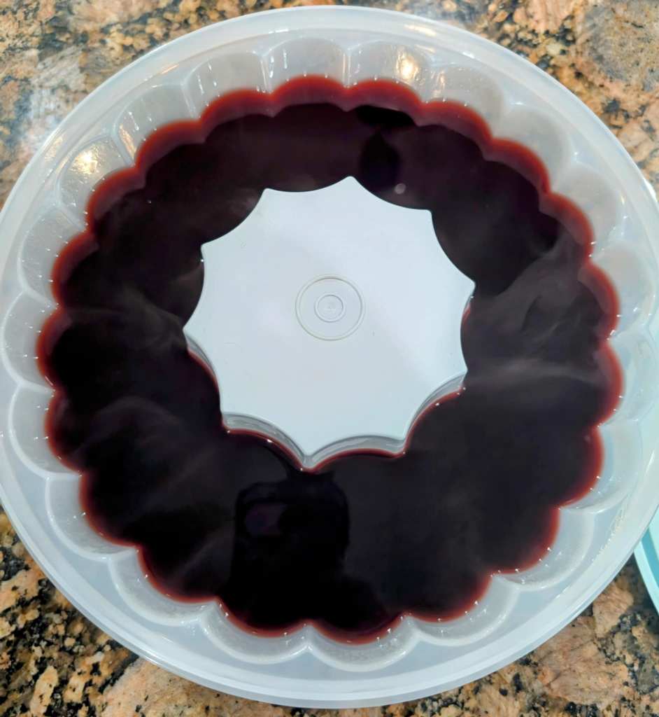 4. Pour into your favorite gelatin mold or an 8×8 glass dish, and refrigerate until set, about 2-4 hours.