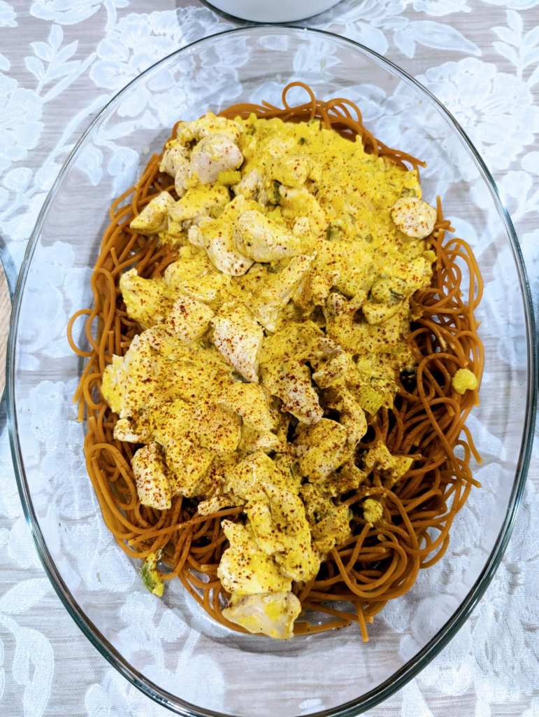 On the first night, we enjoyed the delicious classic dish: Chicken à la King. This creamy, savory meal typically features chicken breast, mushrooms, and onions, all enveloped in a tangy, velvety gravy. It’s easily adaptable to gluten-free and dairy-free diets. Traditionally served over rice, pasta, or potatoes, the dish gained popularity in the 20th century—particularly in the United States.