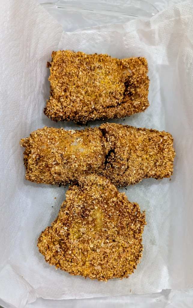 For the main course, I fried up flounder fillets using my classic Southern breading method. (You’ll find the recipe card for that below—it’s a crispy, golden favorite in our house.) Serve with lemon wedges!