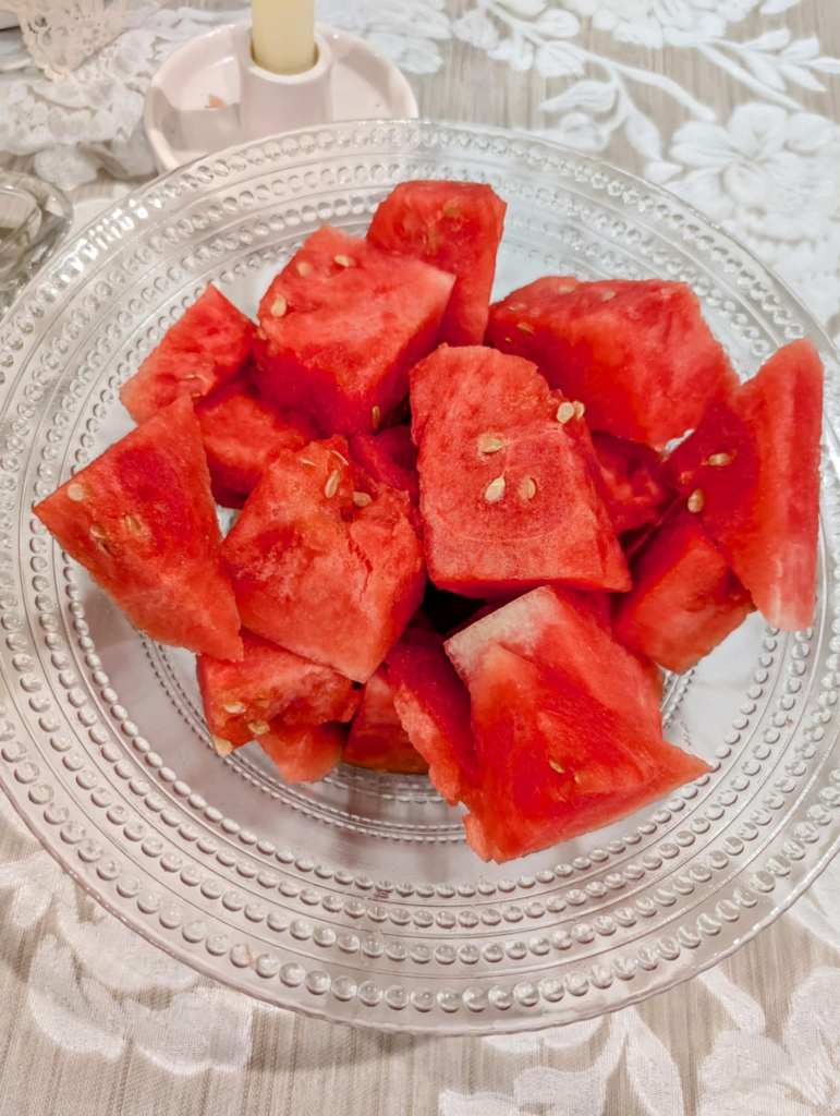 To keep it gluten-free, I created a fresh-milled breading mix and oven-fried the chicken until golden and crisp. We served it with a 1950s-style Southern potato salad, just like Grandma used to make—but with chopped dill pickles, mustard, crunchy celery, and hard-boiled eggs on the side. We also enjoyed juicy, summer watermelon. To round out the meal, I served my go-to millet dinner rolls, and glasses of Farmhouse Teas’ Southern Blend Iced Tea – cold and refreshing!