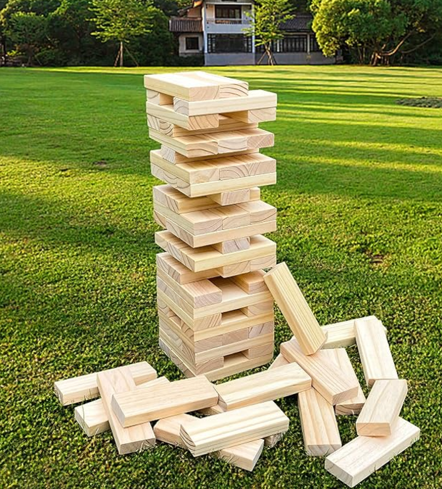 - Giant Jenga-like Game: Looking for a unique present? Consider the outdoor giant Jenga-like game. This game consists of 72 timber pieces that can be assembled into a 3’6″ structure. It is priced at $31.99