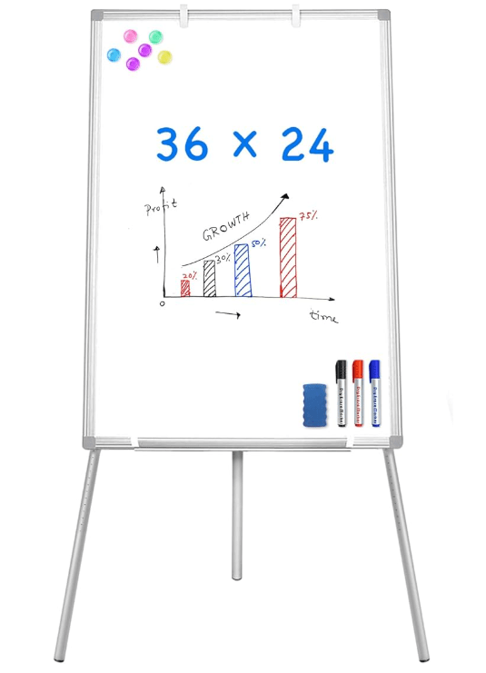 We upgraded our whiteboard this year to a larger 36 X 48 on wheels. This one is priced at less than $100, for $88.01. But if you’re looking something smaller, at a lower price point, here’s the one we’ve used for the past 5 years on a tripod stand. It’s a #1 bestseller and priced at $47.99.